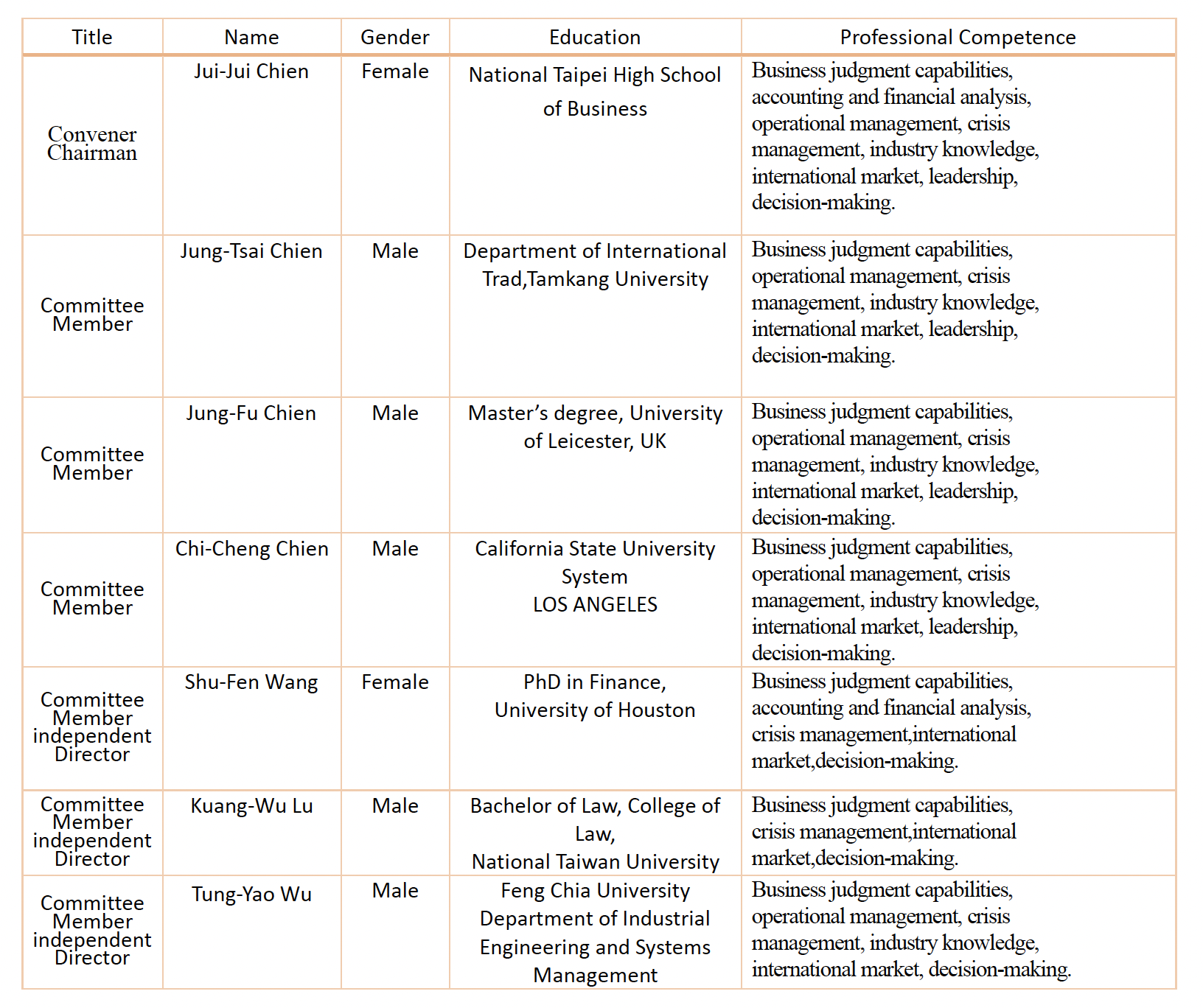 In accordance with the provisions of Article 14-6 of the Securities and Exchange Act, the company has established a salary and remuneration committee with three members, served by three independent directors, all of whom have more than five years of work experience and relevant qualifications, which is sufficient to maintain the independence and professionalism of the remuneration committee. and fairness.