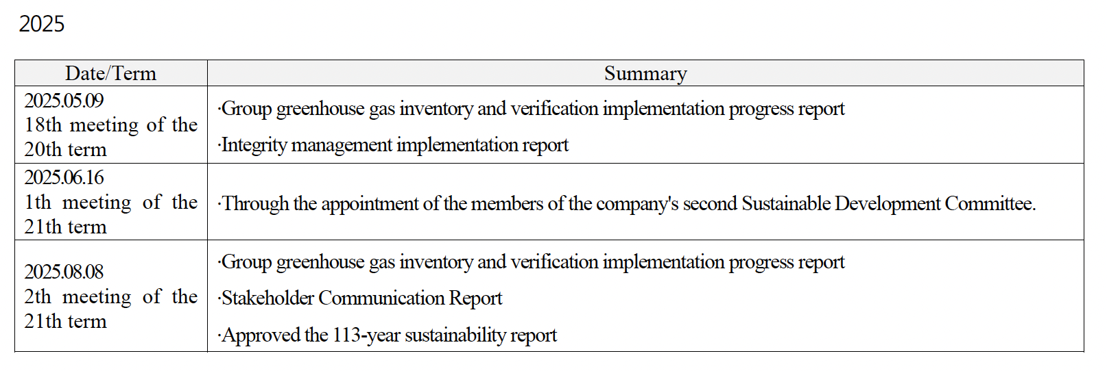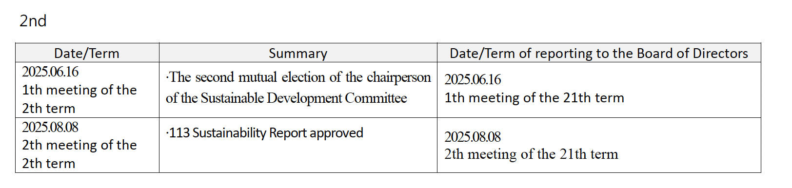2. Operations and annual execution of the current year: The Sustainable Development Committee holds at least two meetings a year, with a total of seven