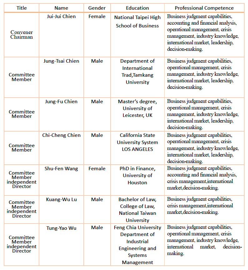 members and the Chairman of the board serving as the convener, and more than half of the members are directors with relevant professional capabilities.