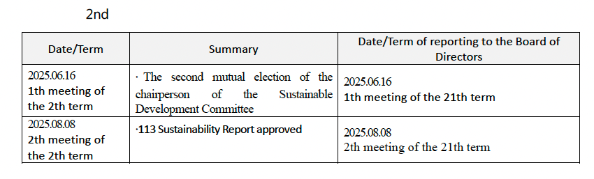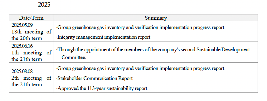 2. Operations and annual execution of the current year: The Sustainable Development Committee holds at least two meetings a year, with a total of seven