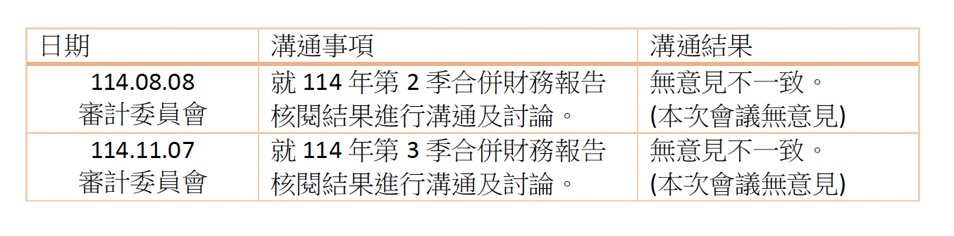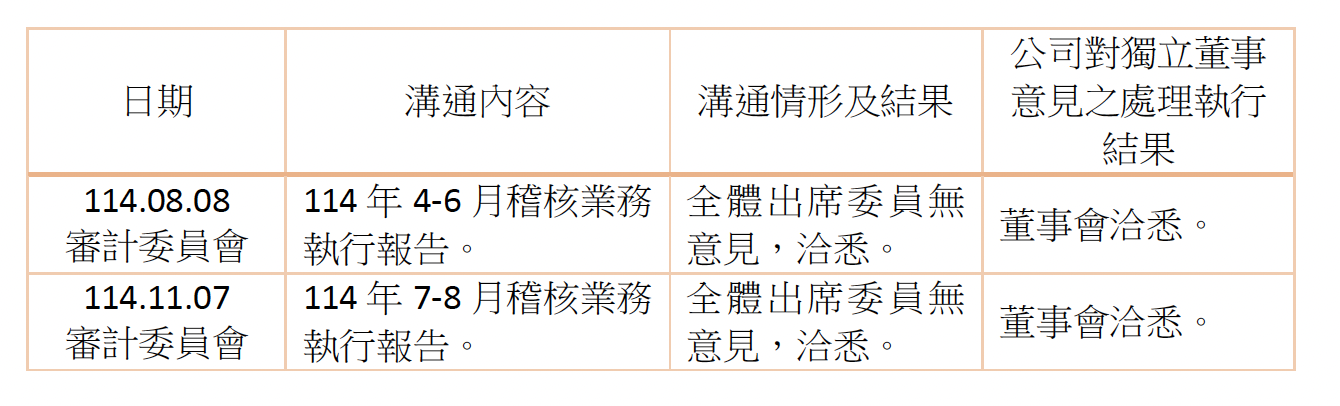本公司獨立董事與簽證會計師於每季審計委員會議中針對本公司及子公司財務報表核閱或查核結果進行溝通,相關事項均透過充分溝通取得共識,溝通情形良好。